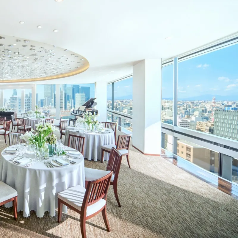 【一面ガラス張り&名古屋の街を一望*パノラマビュー】◆自然光がさしこむ開放感に満ちた会場◆贅沢なフルオープンキッチン◆熱々できたての調理シーン◆食欲をそそる、おもてなし《料理重視派におすすめ》